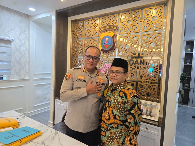 Medan, sumatraterkini.id-KH. Akhmad Khambali selaku Ketua Umum Gema Santri Nusa sekaligus Pengasuh Majlis Sholawat Ahlul Kirom merajut Kasih Menjalin Silaturrahim dengan Kapolrestabes Medan Kombes Gidion Arif Setyawan, Memasuki perhelatan Pilkada serentak, khususnya di Kota Medan dan Wilayah Hukum Polrestabes, Rata rata Cakada kabupaten Deliserdang dan kota Medan masih minim gagasan dan strategi untuk mewujudkan kemajuan dan kesejahteraan Kab/Kota masing-masing.